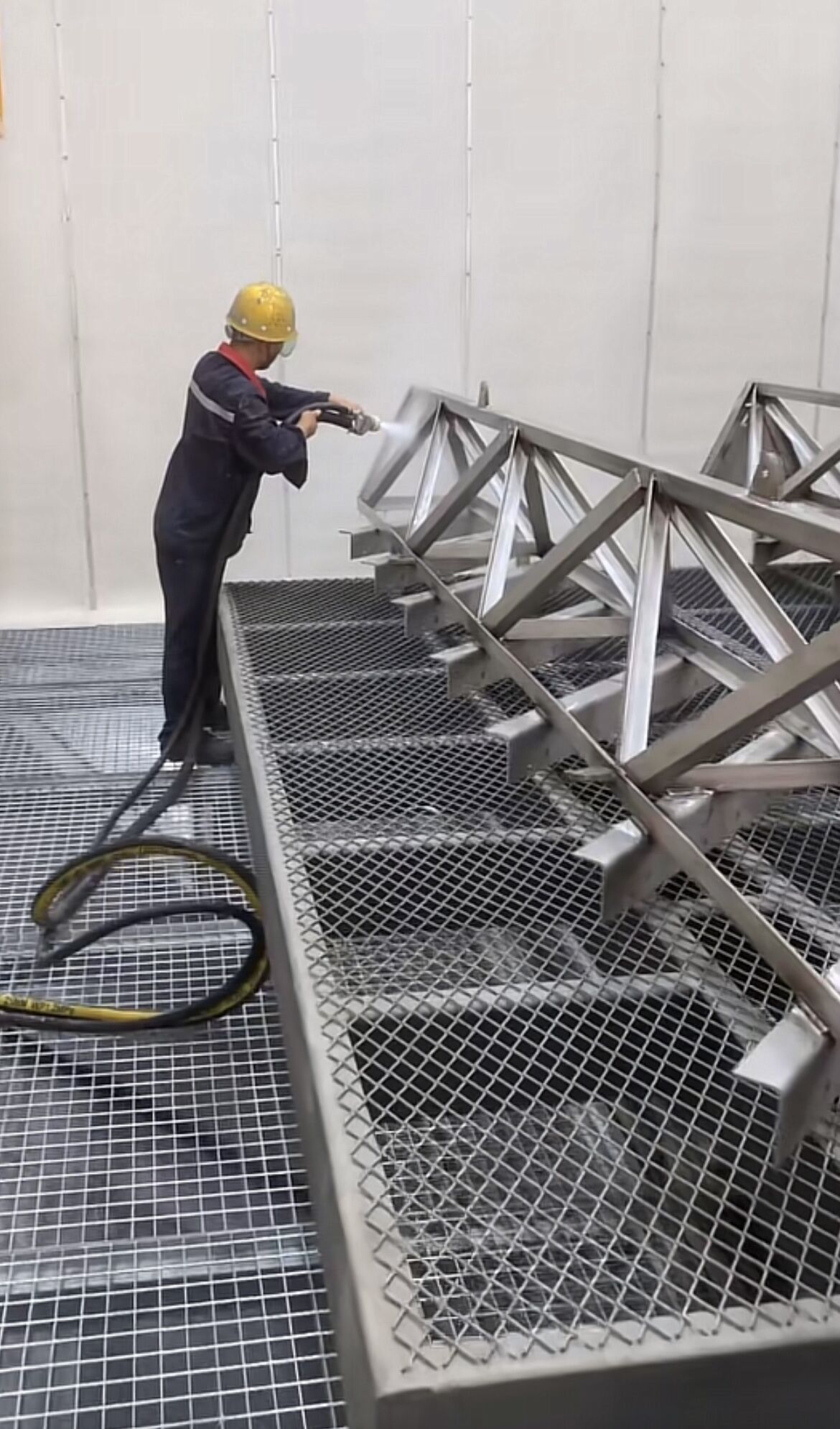 2、大型結(jié)構(gòu)件的表面噴砂加工,以及大型零部件的表面噴砂處理與強(qiáng)化。