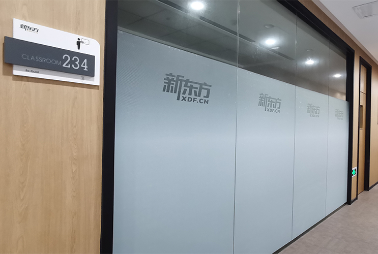 安裝后的新東方培訓(xùn)學(xué)校磨砂玻璃貼效果。長沙廣告貼膜專業(yè)施工
