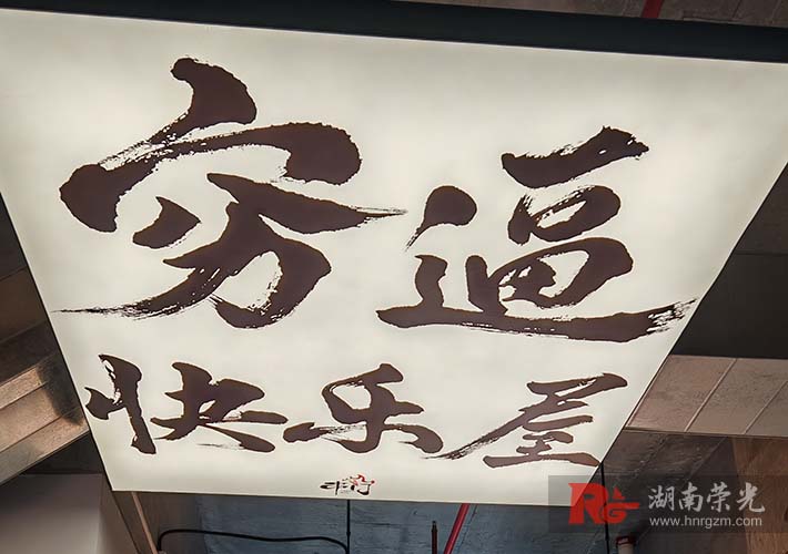 當(dāng)夜幕降臨,華燈初上,這個(gè)書法吊頂長沙燈箱宛如一顆璀璨的夜明珠。