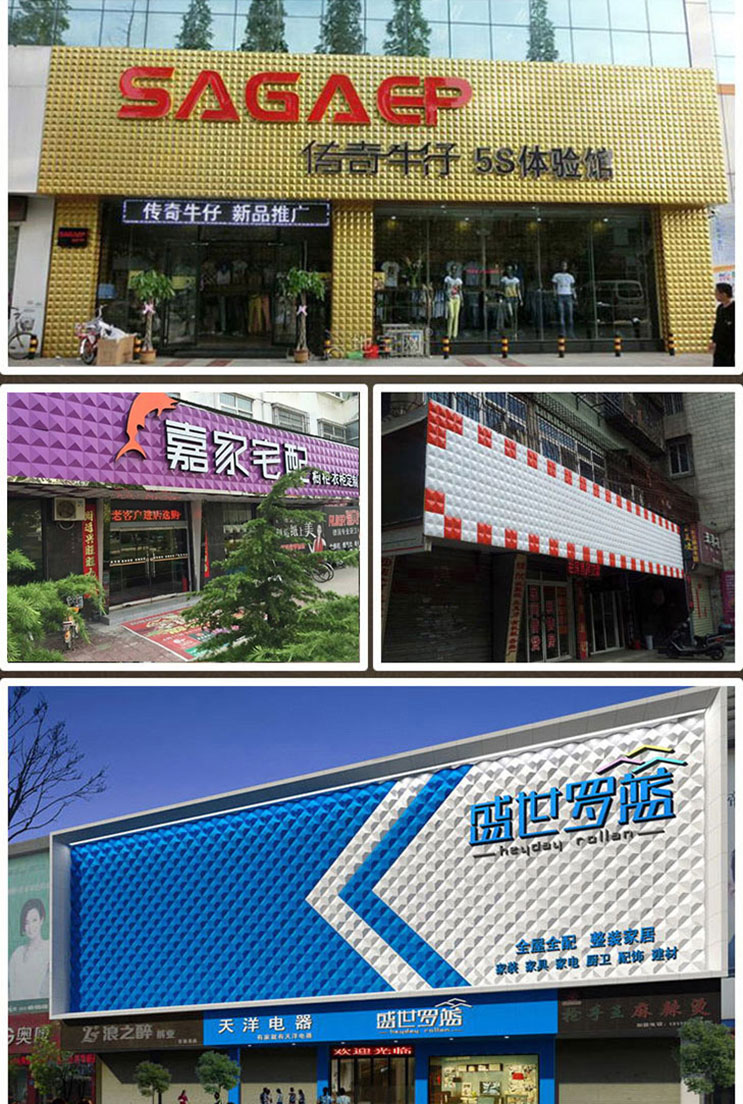 招牌材料:三維扣板,是一種使用工程塑料以及ACM強(qiáng)化樹脂為主要原材料來進(jìn)行的制作,原材料質(zhì)地堅(jiān)硬,具有很好的穩(wěn)定性能,使用它們制作出來的額三維扣板具有很好的三維立體效果,三維扣板的外觀造型簡約,且有很好的上色效果,是一種比較新型的裝飾材料,它可以廣泛使用到室內(nèi)室外的裝飾當(dāng)中。
