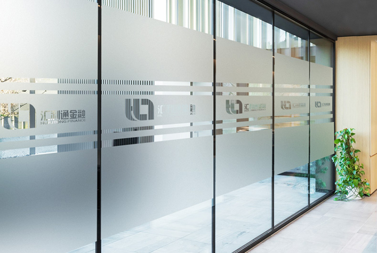 長沙公司隔斷LOGO制作 透明鏤空玻璃貼條 公司背景墻