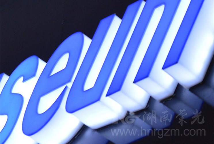 工藝:藍(lán)色亞克力面板,側(cè)面乳白色亞克力圍邊,通體發(fā)光。亞克力發(fā)光字由壓克力面板、發(fā)光字箱體、及發(fā)光字光源三部分組成。